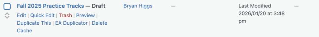 … and do a Quick Edit to change the title – in this case, to Fall 2026 Practice Tracks